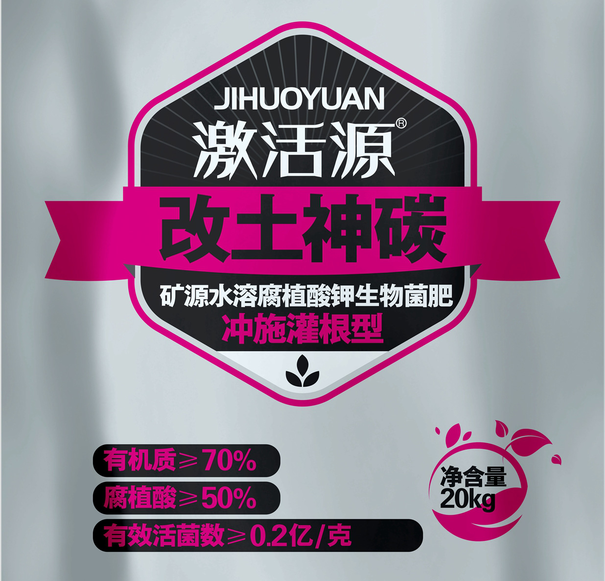 冲施灌根型 v 有机质>=80% 腐植酸>=70% K2O>=10% 20kg/袋